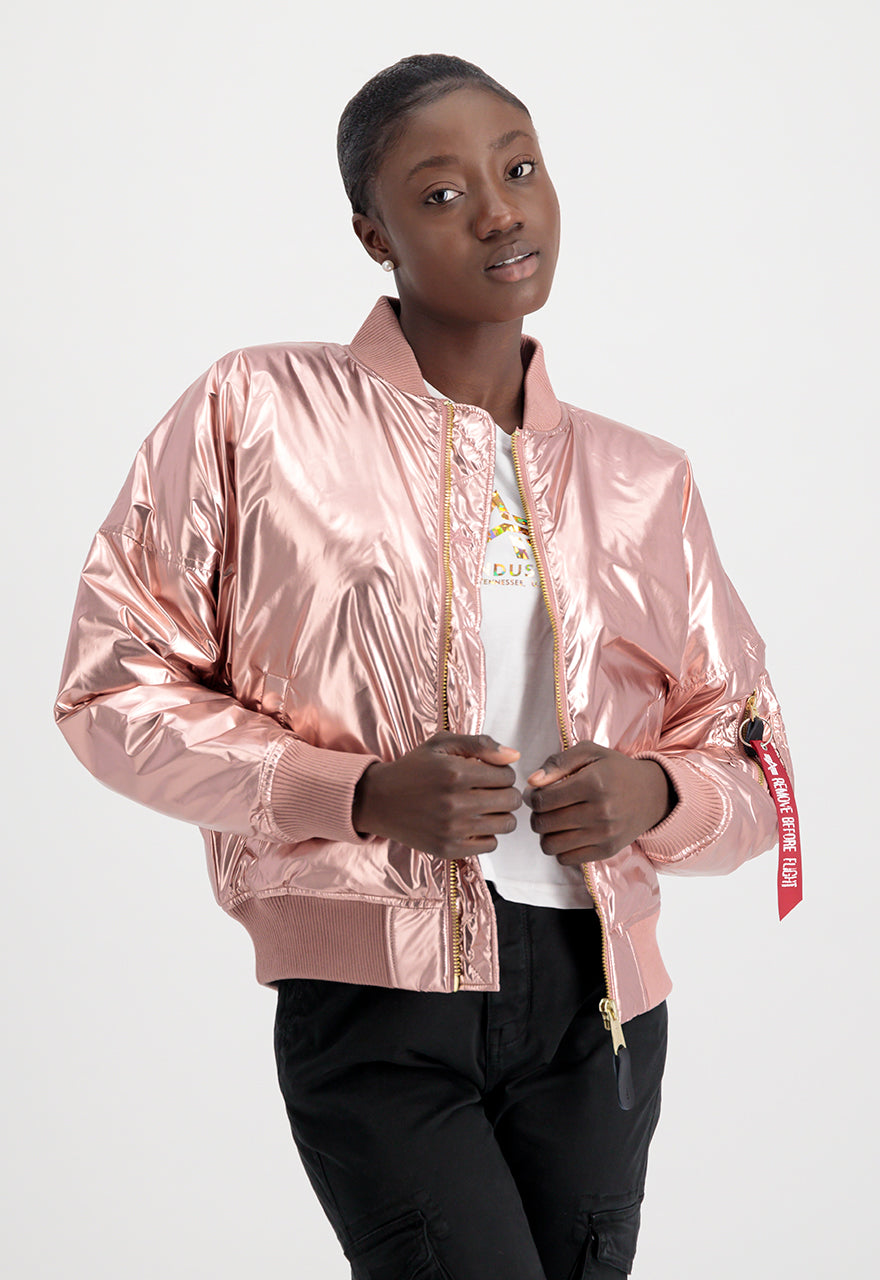 Rose copper metallic bomber jacket from ALPHA INDUSTRIES.