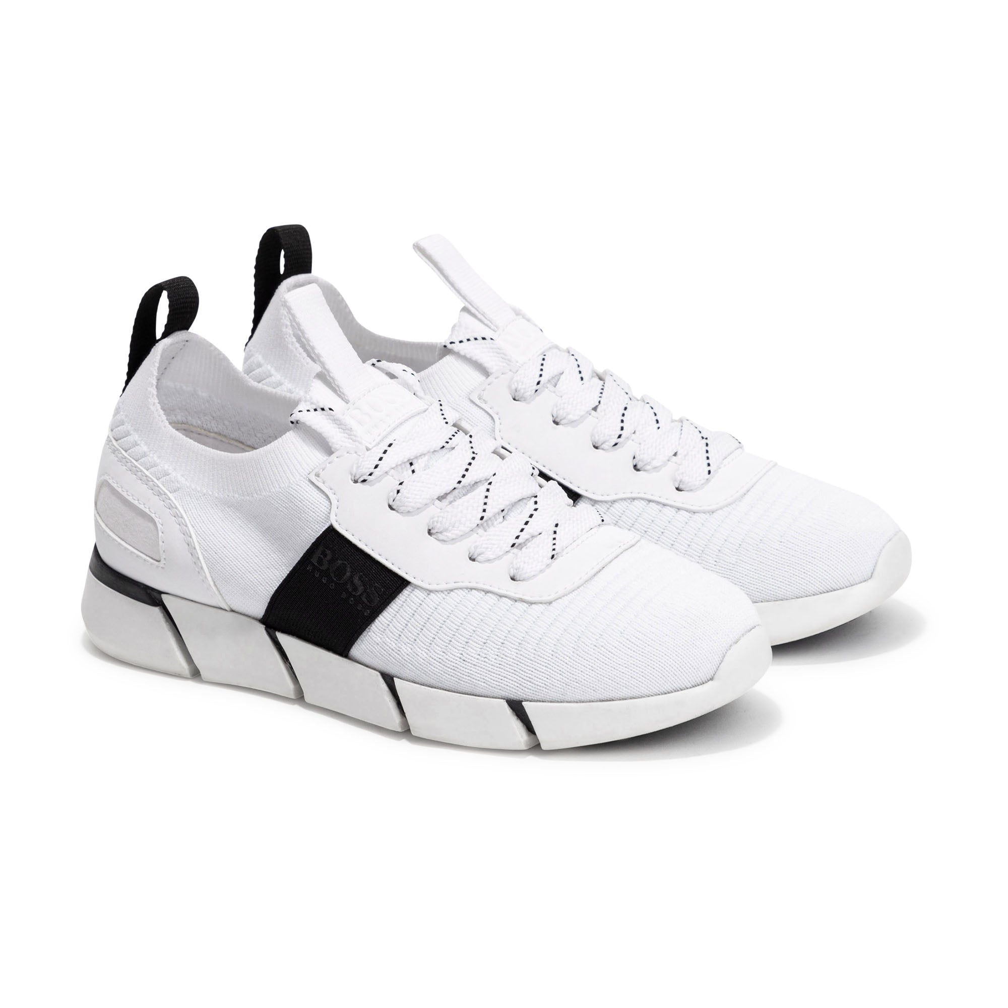 Hugo Boss Kids White Sneakers with rubber sale With Black Stripe on the side