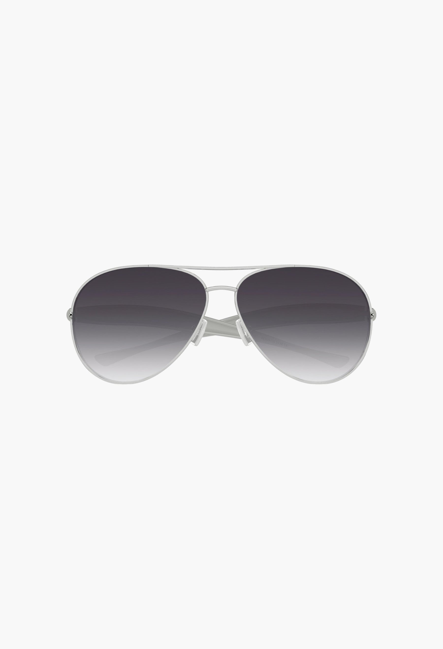 All-metal aviator design. Iconic sardine temple with voluminous geometry and hollowed out from the inside to reduce weight. Top bar with Bottega Veneta logo on top.
