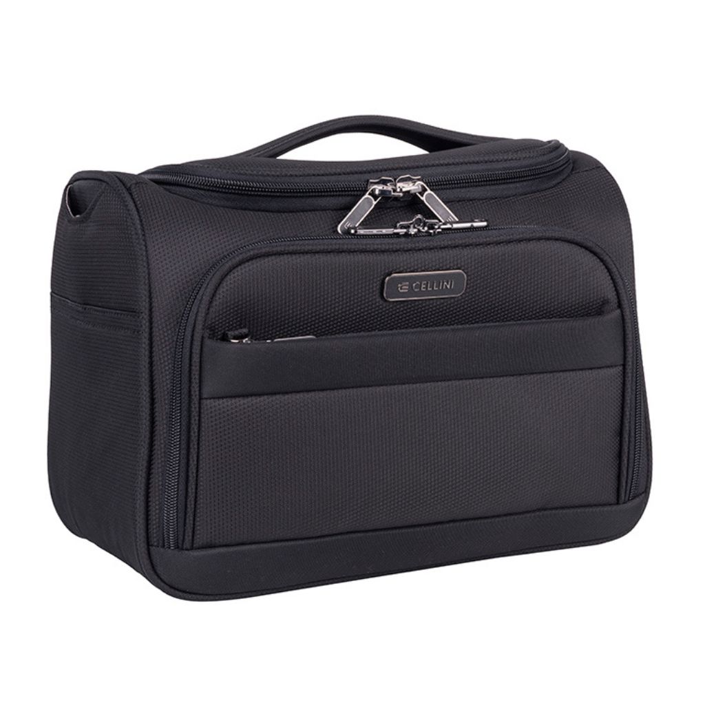 Carry all those essential items safely and securely in this stylish Beauty Case which has a comfortable adjustable shoulder strap. Features include a wet pouch for damp items, 4 x 100ml bottle-holder sleeves and 2 front zip compartments. The Cellini Microlite S is a superb softshell range of luggage accessories is available in Midnight Blue, Black and Sandalwood. It has been crafted using a light and durable polyester fabric which has a water- and stain-resistant fabric coating. There is a trolley sleeve to allow you to attach your Beauty Case to your suitcase for easier mobility on route to your destination.