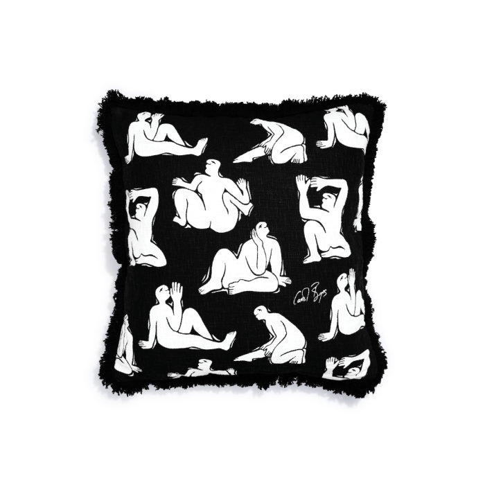 The Lazy Days – Black cushion brings Carrol Boyes’ signature sculptural artistry into your everyday. Crafted from luxurious 100% cotton slub for a rich, tactile finish, its double-sided design features relaxed human forms in an expressive monochrome print - a nod to Carrol’s timeless muse. Finished with quirky fringing and an invisible zip, it includes a feather-like microfibre inner for plush comfort. Perfect for neutral interiors, this scatter effortlessly blends art, design and leisure into one stylish accent.