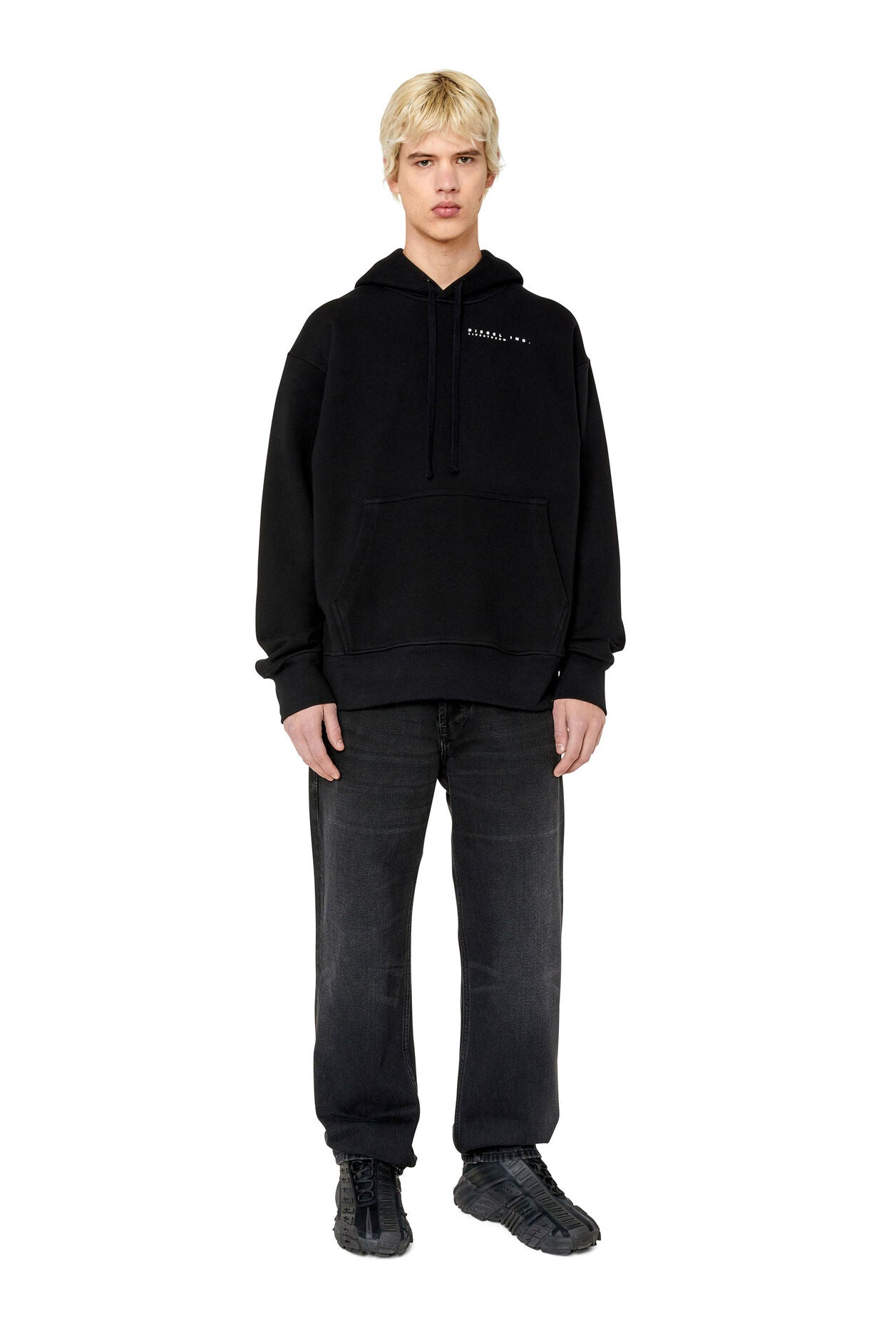 Mens loose-fit hooded sweatshirt built from cotton jersey, puff-printed with Diesel Ind. Livestream on the chest and back. The metallic foil print on the back is topped with a photo print.