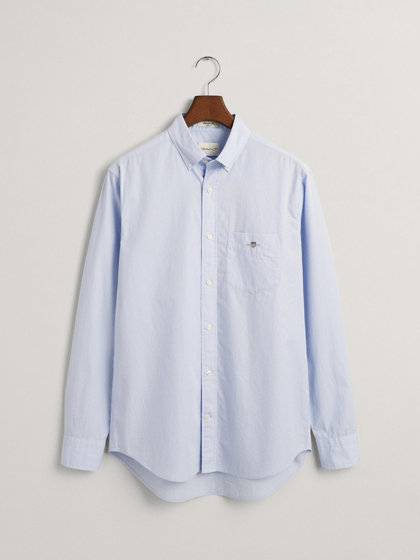 Crafted from a crisp cotton poplin, this GANT shirt is a preppy essential. Designed for a regular fit, this shirt features a button-down collar, chest pocket and a box pleat with the signature GANT locker loop invention at the back. It is accented with an '80s archive-inspired GANT shield graphic embroidered at the chest. This shirt pairs easily with jeans and chinos.