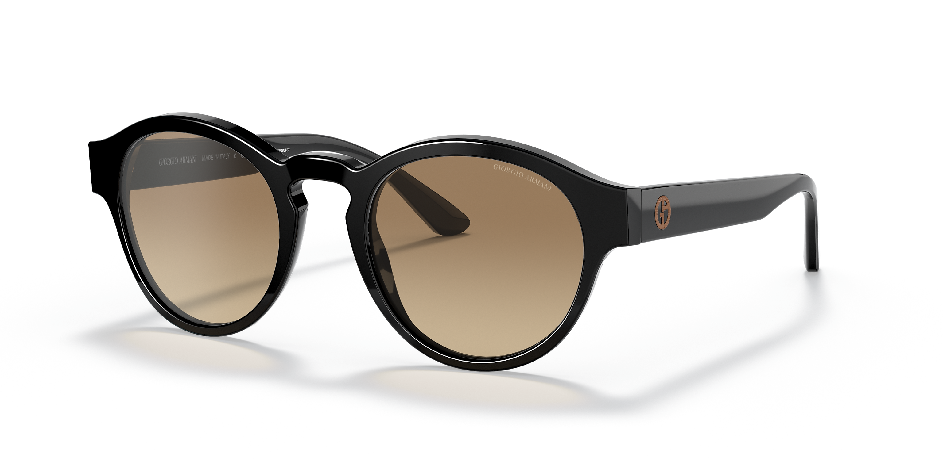 Elevate your style with Giorgio Armani AR8146, a unique blend of sophistication and modernity. The iconic phantos frame in black color, featuring a key bridge and photochromic lenses in gradient brown color is enriched by the iconic Armani eagle on the temple. These shades offer both timeless elegance and contemporary flair that effortlessly complements any outfit.