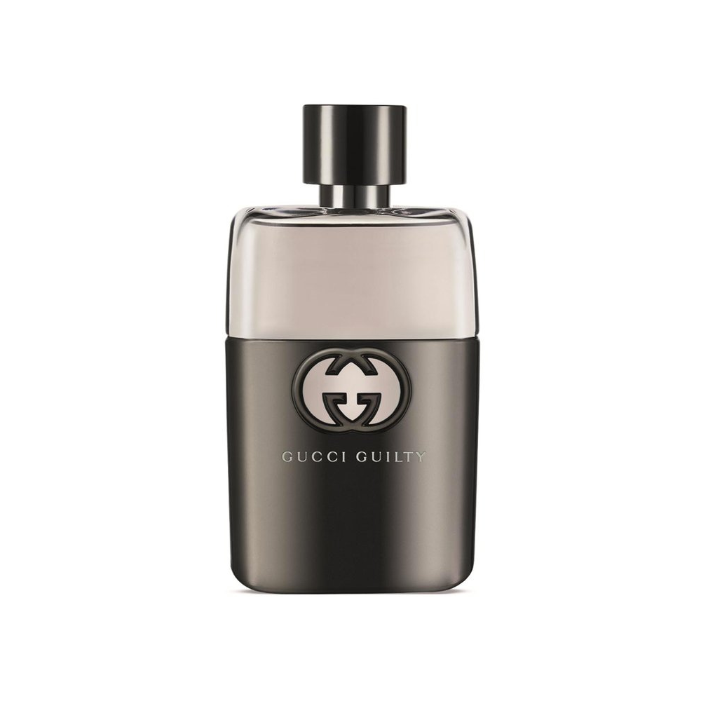 Gucci Guilty Pour Homme’s grey clad bottle and cap complement the warm purple-grey colored scent. The Interlocking G logo defines the front.