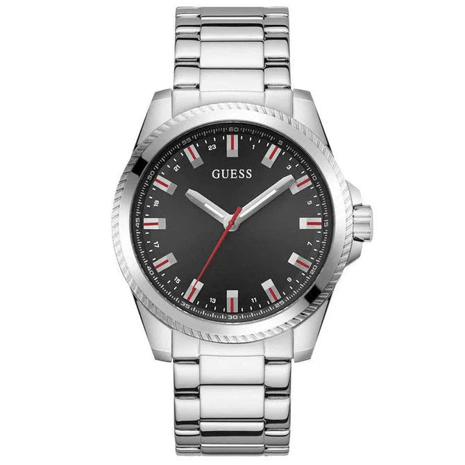 Elevate your style with the Guess Champ Black Dial Mens Watch (GW0718G1), a sleek and sophisticated timepiece designed for the modern gentleman. Featuring a bold black dial with contrasting silver-tone accents, this watch exudes a sense of timeless elegance and understated luxury.