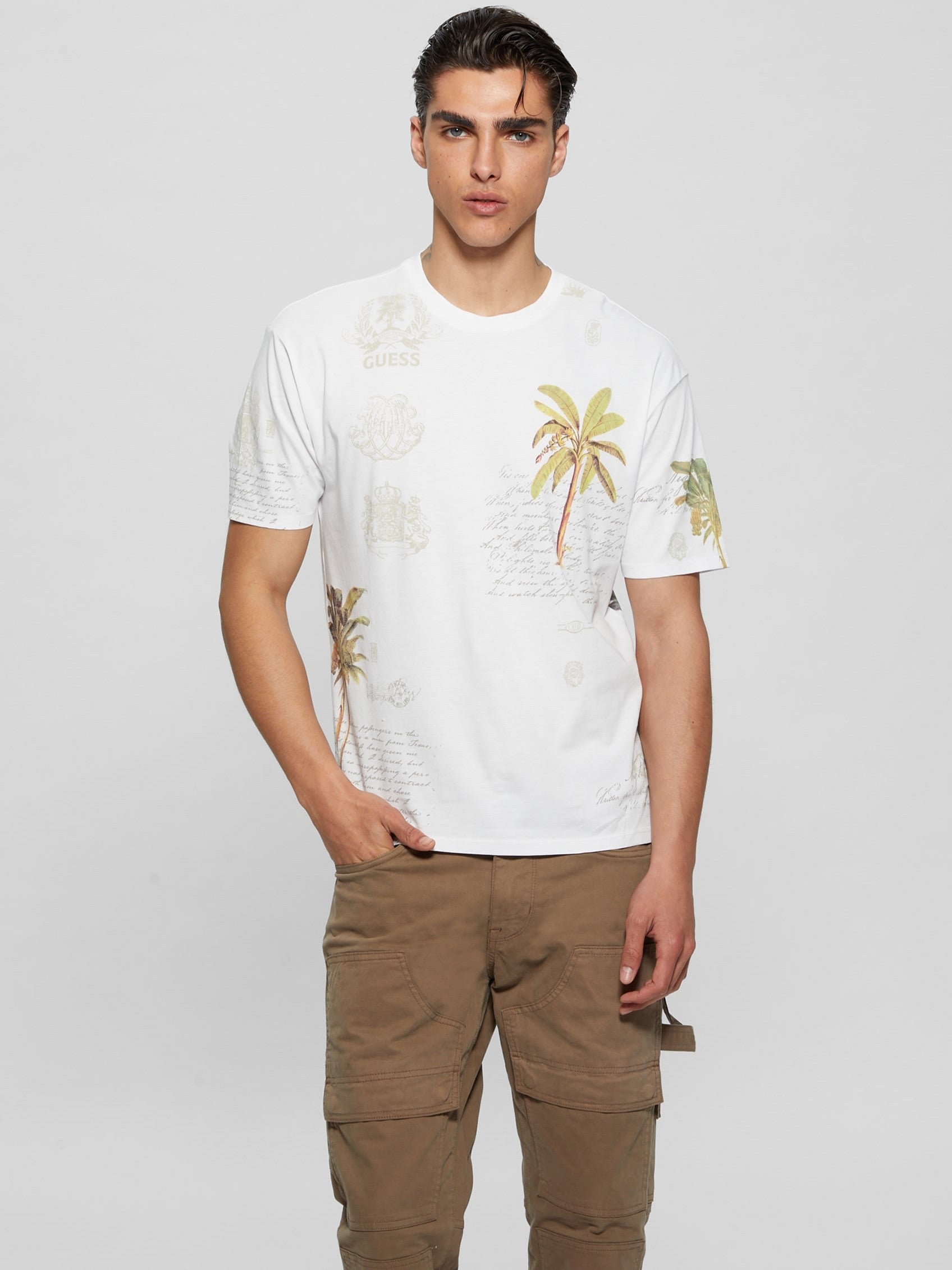Guess M4Yi0Hk9Rm1G Mns Ss Bs Palm Collrge Tee White