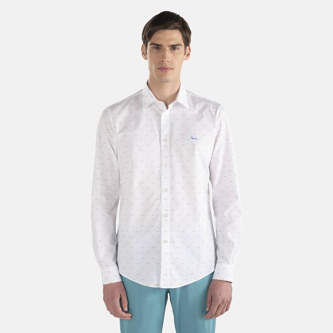 With this modern cotton shirt, made from 100% cotton and complete with herringbone-patterned collar band, Harmont & Blaine has recreated a quintessential garment for men. The dachshund motif all over makes it cool and casual, while the slightly figure-hugging narrow fit adapts to the male figure without hindering movement.