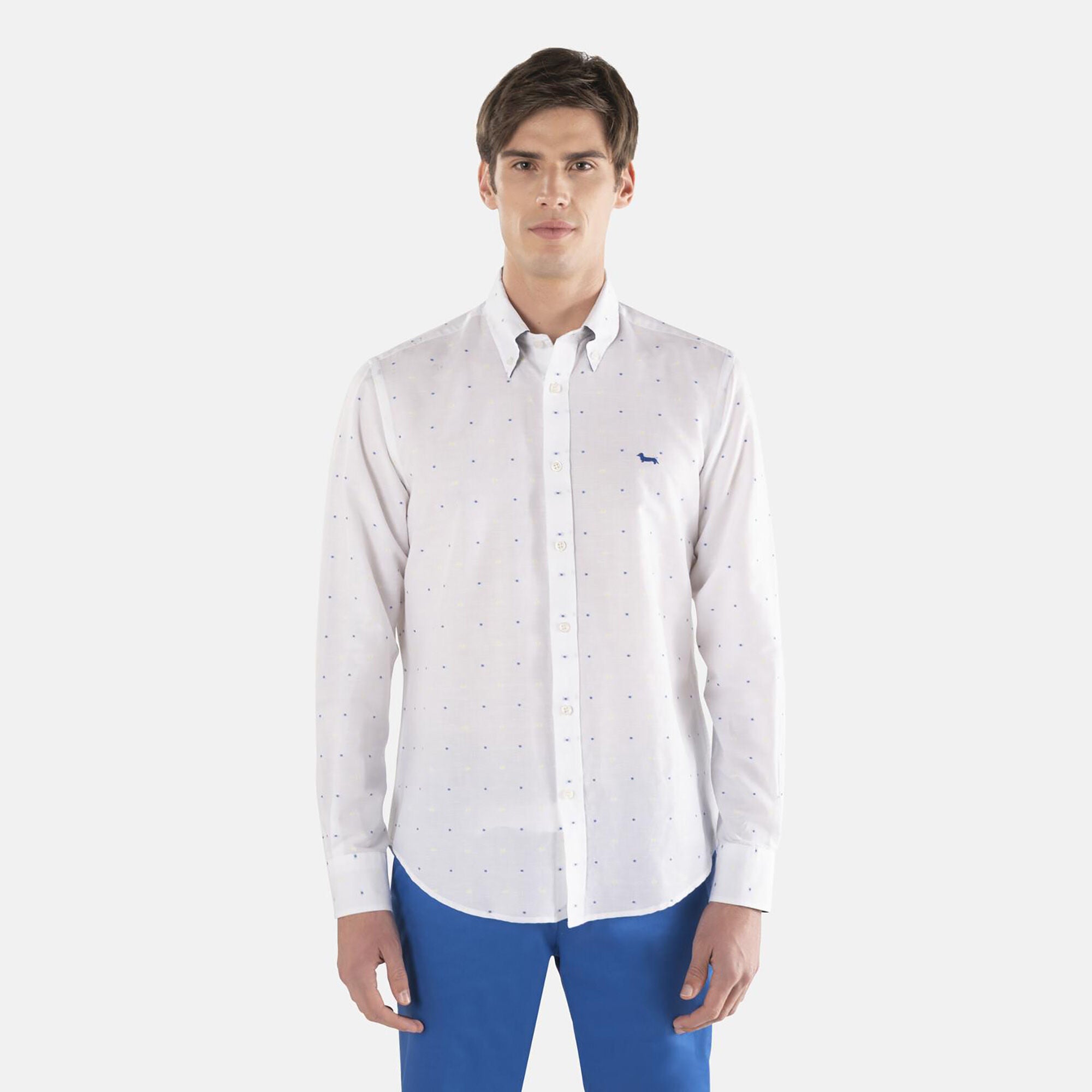 This sophisticated mens shirt from Harmont & Blaine is an ode to lightness and to a relaxed summer style. Its cotton-linen blend composition ensures breathability throughout the day, in perfect combination with the slightly softer regular fit. The all-over fil coupé micro dot motif contributes to giving the shirt a burst of energy.