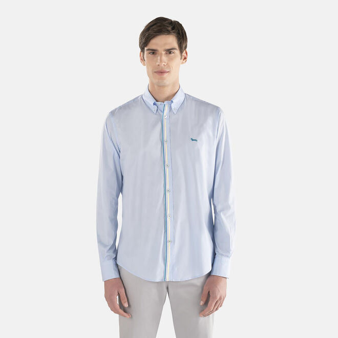 This Harmont & Blaine mens shirt is perfect for an elegant yet fresh and cheerful look. Made of stretch cotton to accommodate every movement, this regular fit shirt works for multiple occasions, from a work event to leisure time. The striped ribbon detail embodies a slight contrast with a lively character.