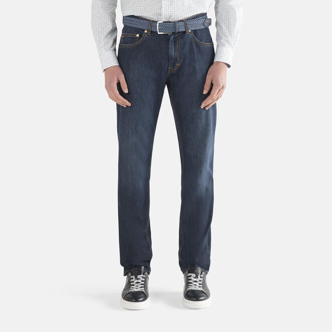 Versatility is the watchword for these five-pocket jeans in stretch cotton denim. The straight-leg design and belt loops accentuate the comfort of the garment, while the vintage wash and contrasting details on the coin and back pockets add a touch of originality, always one of Harmont & Blaines distinctive codes.