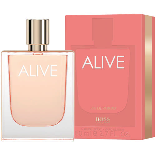 Hugo Boss Alive Eau De Parfum leaves a trail of positive energy. Contemporary and confident, this scent blends soft and bold notes. Sparkling apple and plum top notes exude optimism, while a powerful floral heart of jasmine sambac reveals radiant femininity. A golden ornament surrounds the glass bottle like a piece of jewelry, while the nude pink juice captures the light, reflecting the aspirational, life-affirming nature of alive.