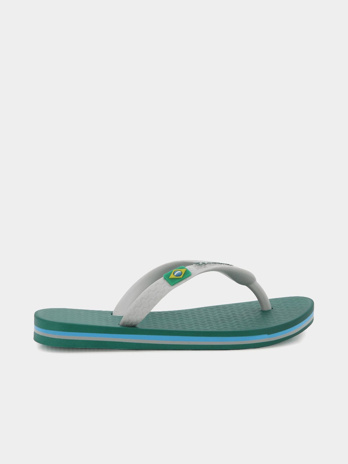 These cute flip-flops showcase a fun green/white color, featuring the Brazilian flag. Crafted entirely from recyclable materials and completely vegan-friendly, they're the guilt-free choice for your child's fashion statement. With Ipanema's commitment to zero waste, every step is a step towards sustainability. Whether it's playtime or a day out, these flip-flops are the perfect addition to your little one's eco-friendly wardrobe.