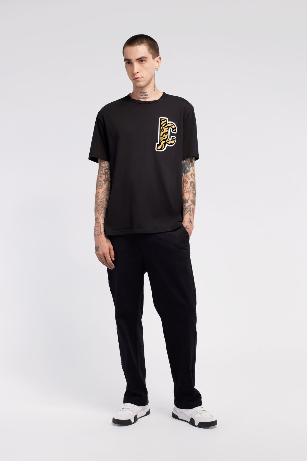 Short-sleeved crewneck T-shirt with contrasting JC maxi initials appliqué in the front with animal details.