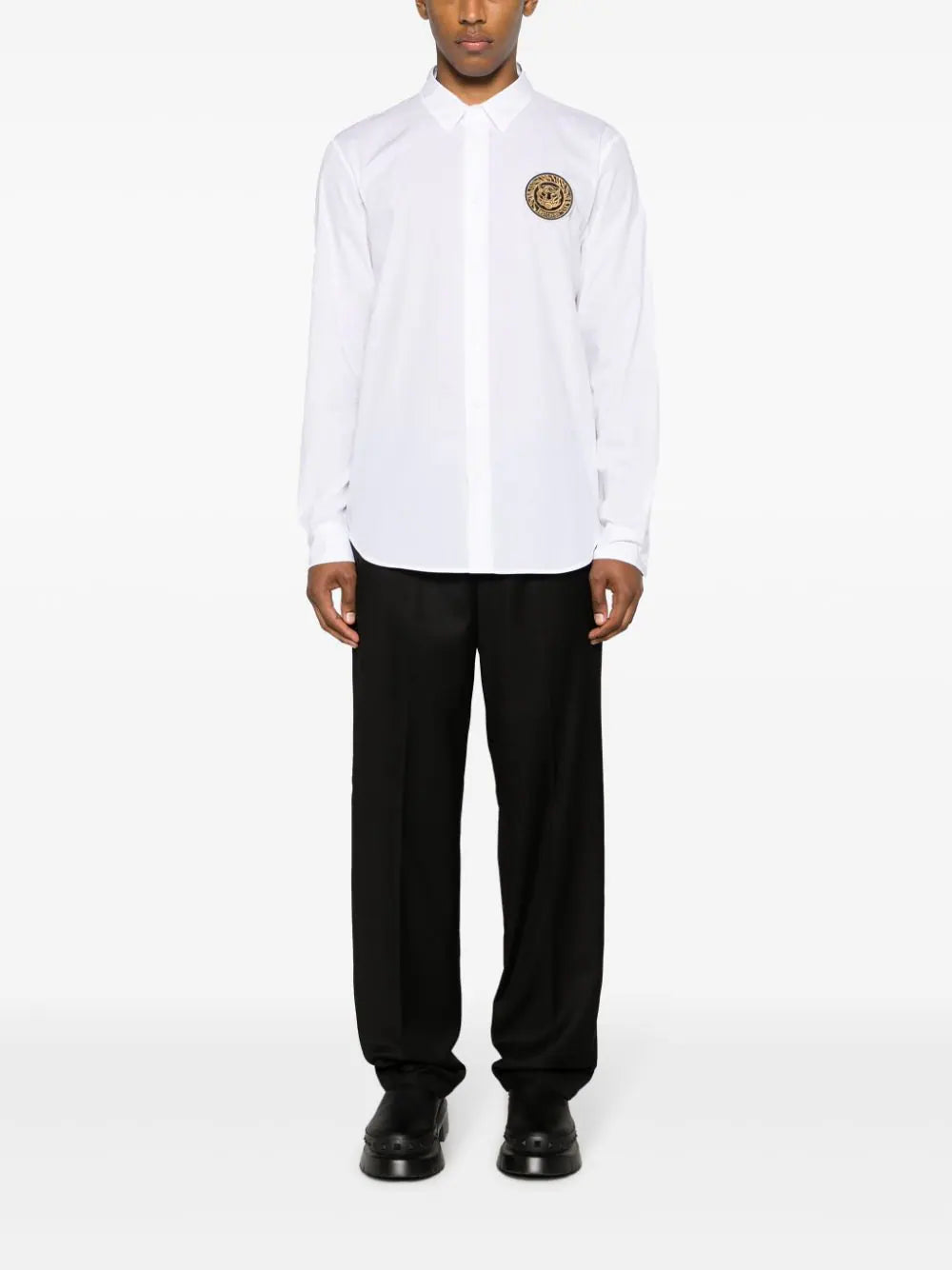Just Cavallis shirt speaks to the houses bold aesthetic. A gold and black Tiger appliqué on the chest elevates the classic button-up silhouette.