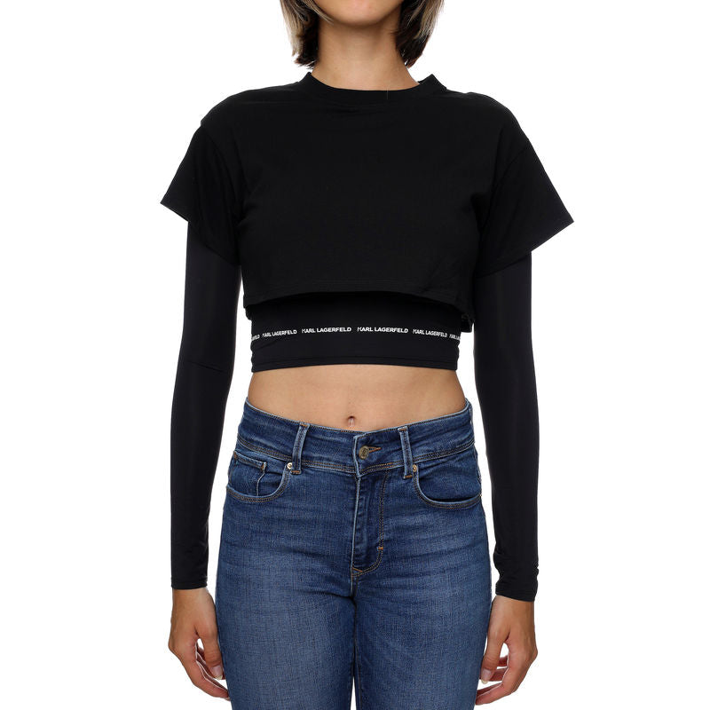 KARL LAGERFELD 235W1721 LAYERED COTTON CROPPED TOP