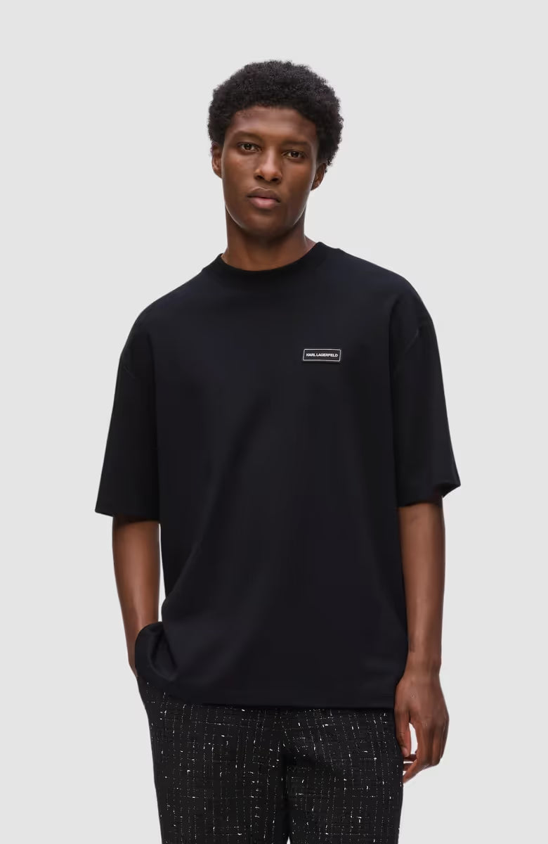 A fresh take on everyday wear, this T-shirt combines a relaxed silhouette with a classic crew neck, offering effortless versatility. A subtle KARL LAGERFELD rubber patch anchors this casual-cool piece.