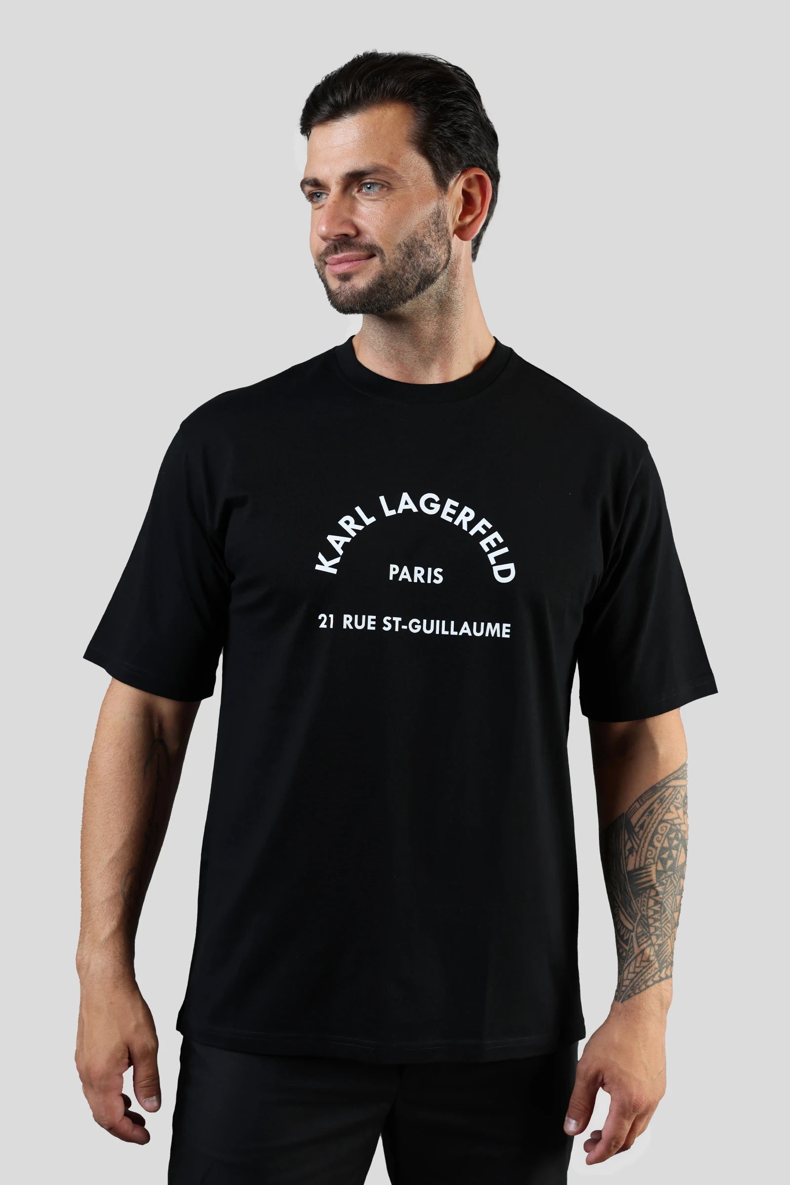 Men's short-sleeved T-shirt with a round neckline. The straight and very comfortable cut is decorated with a contrasting Karl Lagerfeld logo on the chest. The material composition of the high-quality jersey is made of 100% cotton fiber of premium origin, which stands out for its softness, but also durability and perfect breathability. The timeless look and versatile combinability make this practical material an irreplaceable piece suitable for everyday wear.