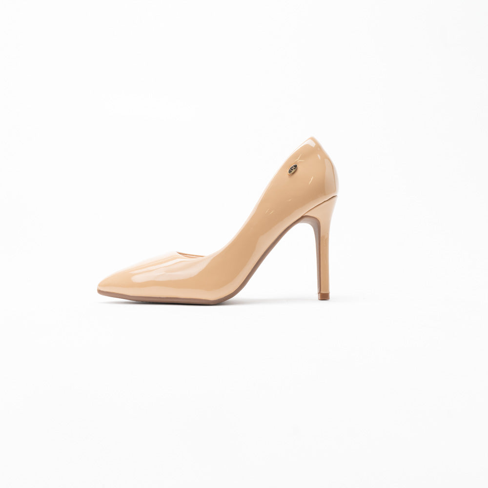 Elevate your style with these exquisite nude patent pointy high heel shoes from Italy. Crafted with precision on a striking stiletto heel, they feature a faux leather upper adorned with an elegant side cut-out. Made from patent faux leather, they exude a beautiful finish while offering the ideal height boost for any occasion.