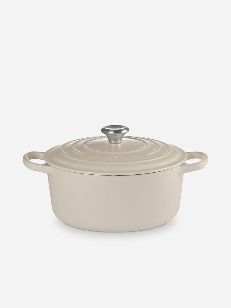 Crafted from premium Cast Iron and finished with a glaze, the Le Creuset Signature Round Cocotte in Brioche is a versatile kitchen essential that can be used in the oven and on all stovetops, including induction. Make everything from slow-simmered soups and stews to no-knead bread and even cake.