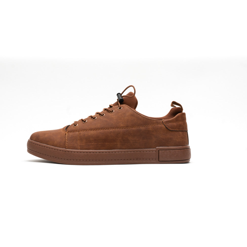 The chestnut-colored premium suede leather of this sneaker offers a luxurious and timeless appeal. This Elastic Tie Up Takkie is designed with a padded tongue and collar, it provides added support and comfort. The plastic rubber outsoles ensure excellent traction and durability, making it suitable for various surfaces. Its clean design enhances versatility and showcases the high quality of the materials and craftsmanship. This classic sneaker is a go-to choice for both casual and stylish outfits.