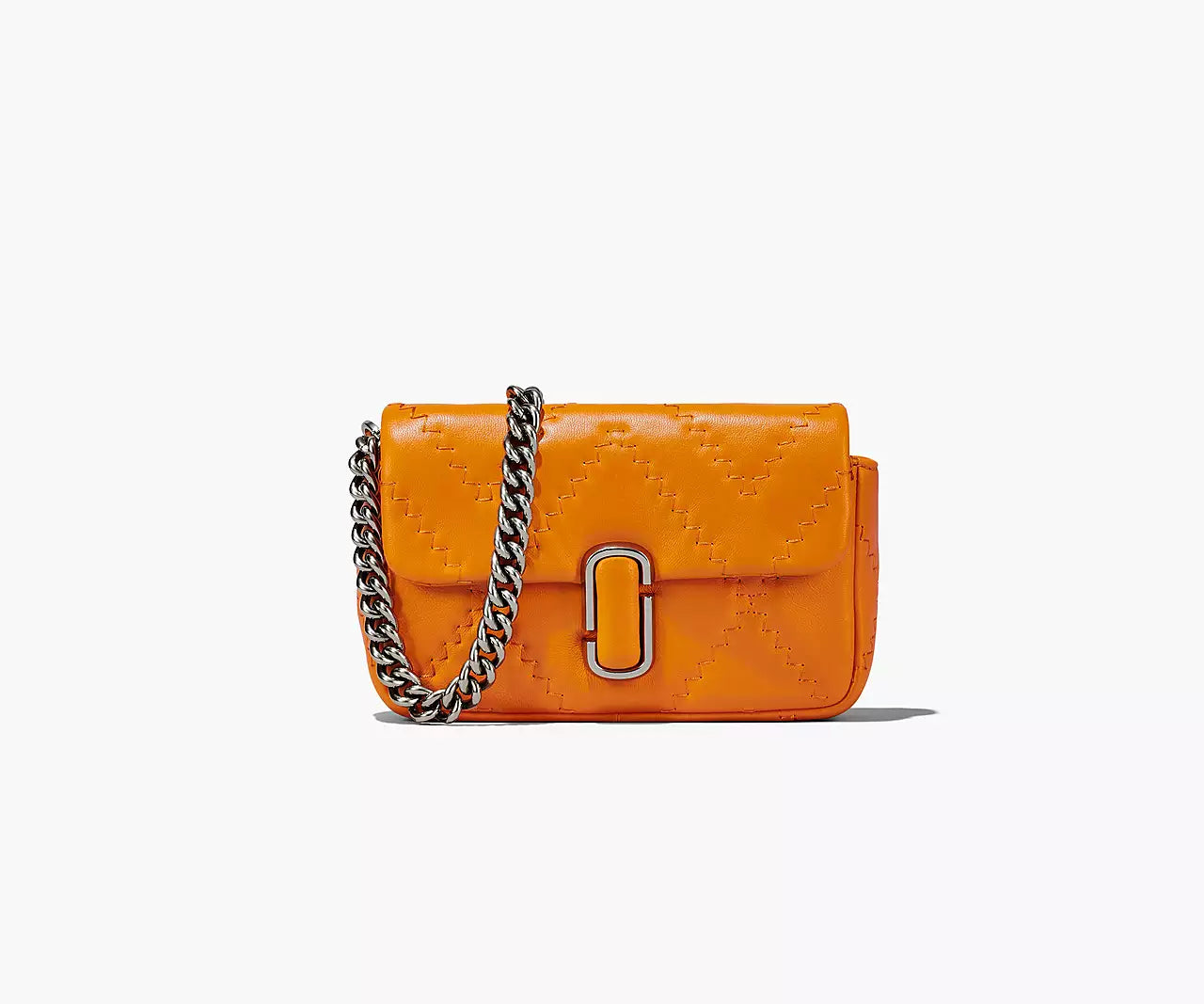 This mini new iteration of our signature J Marc Mini Bag features the same classic details as the original and is redesigned in a quilted, light-filled soft lamb leather for a plush feel. It secures with a magnetic snap closure and includes one interior zip pocket, three interior card slots, and one back slip pocket. With three ways to wear, go from formal to casual by swapping the chain shoulder strap with the leather crossbody strap, or carry it strapless as a clutch for a true evening moment.