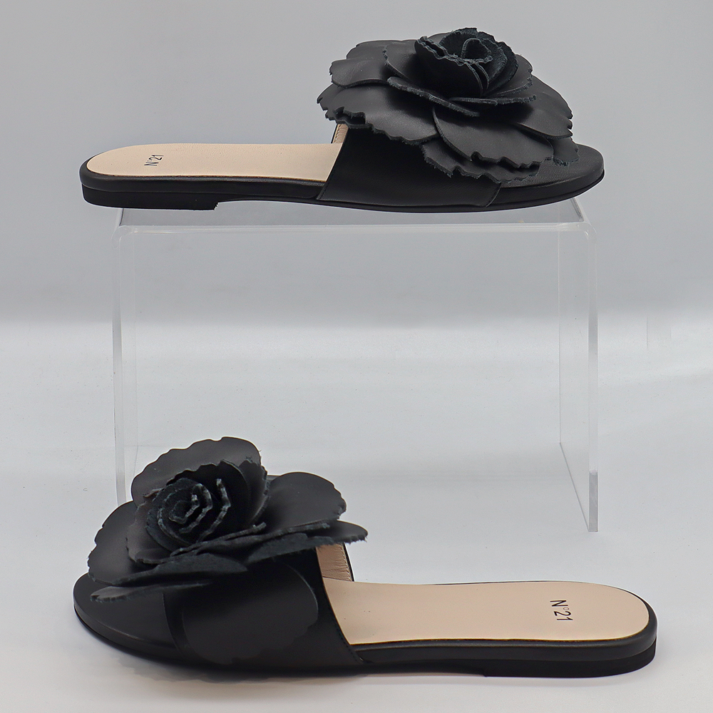 Nº21 Floral-Appliqué Flat Sandals 23Ecpxnv15063 Black