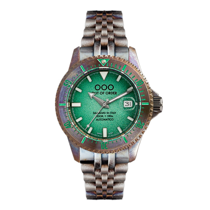 CASE: Stainless Steel solid 316L with "OOO ® exclusive aging process" with uni-directional shock-resistant Stainless Steel solid 316L topring with Superluminova ® engraved numbers;