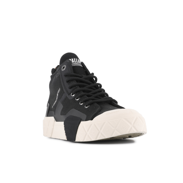 A fresh take on the Ace City Shell Chukka 2, this shoe continues the success of our Palla Ace line with a simplified and lighter upper for the summer season. The bold, signature outsole remains, while a clean canvas upper with subtle overlays brings a sleek, modern touch. A tech-inspired film transfer detail adds an innovative edge, while the organic canvas, breathable mesh sock, and comfort band at the back ensure all-day comfort.