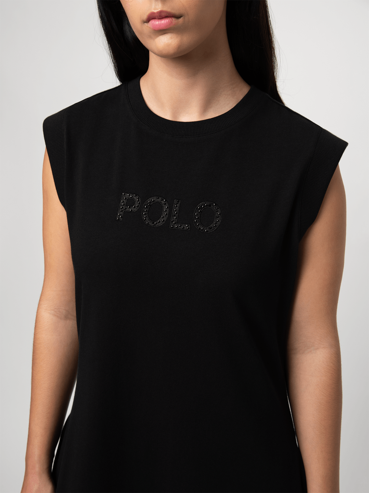 Slip into this premium women's dress, crafted from 100% cotton for ultimate comfort. With its cap sleeves and designer logo embroidery, it’s perfect for any casual outing.