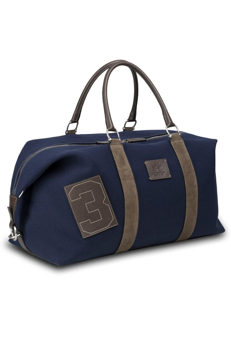 A travel bag made of a combined material that will impress you with its universal use and sophisticated details. The sporty-elegant design with a zip fastening and strong handles for carrying in the hand is complemented by a leather patch with an embossed La Martina logo located on the front. There is a removable shoulder strap with adjustable length. The spacious interior is equipped with a soft jacquard lining and a flat zipped pocket. A very practical and tasteful accessory that will underline your lifestyle.
