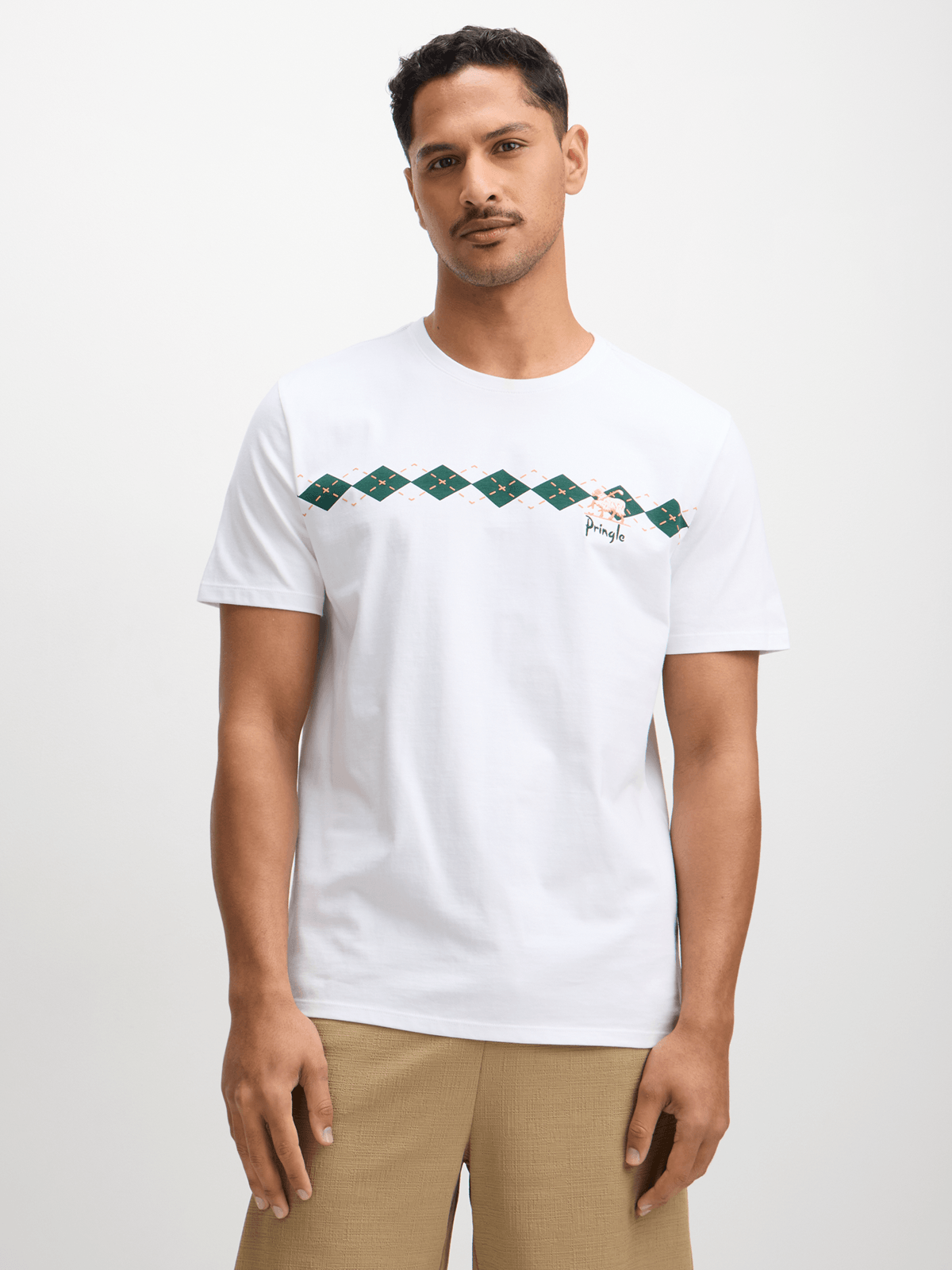 Introducing the Pringle White Harry T-Shirt - a stylish wardrobe staple. Made from 100% cotton, it offers cool wash care instructions and a comfortable fit. Crafted by the premium brand Pringle, this tee is perfect for everyday wear.