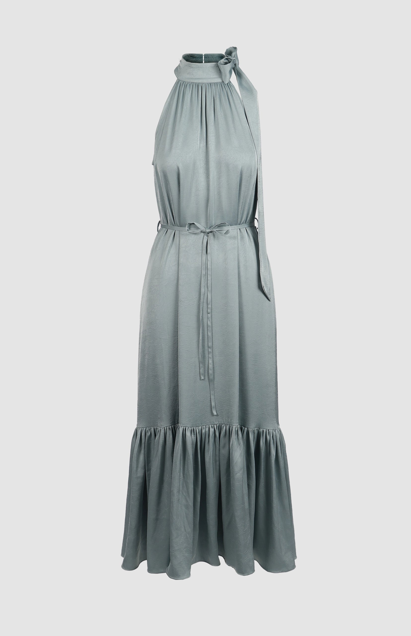 The Pringle Zola Maxi Halterneck Dress is the epitome of graceful simplicity. Designed with a high halter neckline that ties at the side for a soft, feminine touch, this sleeveless silhouette drapes beautifully in a fluid fabric. A subtle waist tie enhances the shape, while the gathered hem panel adds volume and movement to the flowing maxi length. Perfect for summer occasions, evening elegance, or destination events.