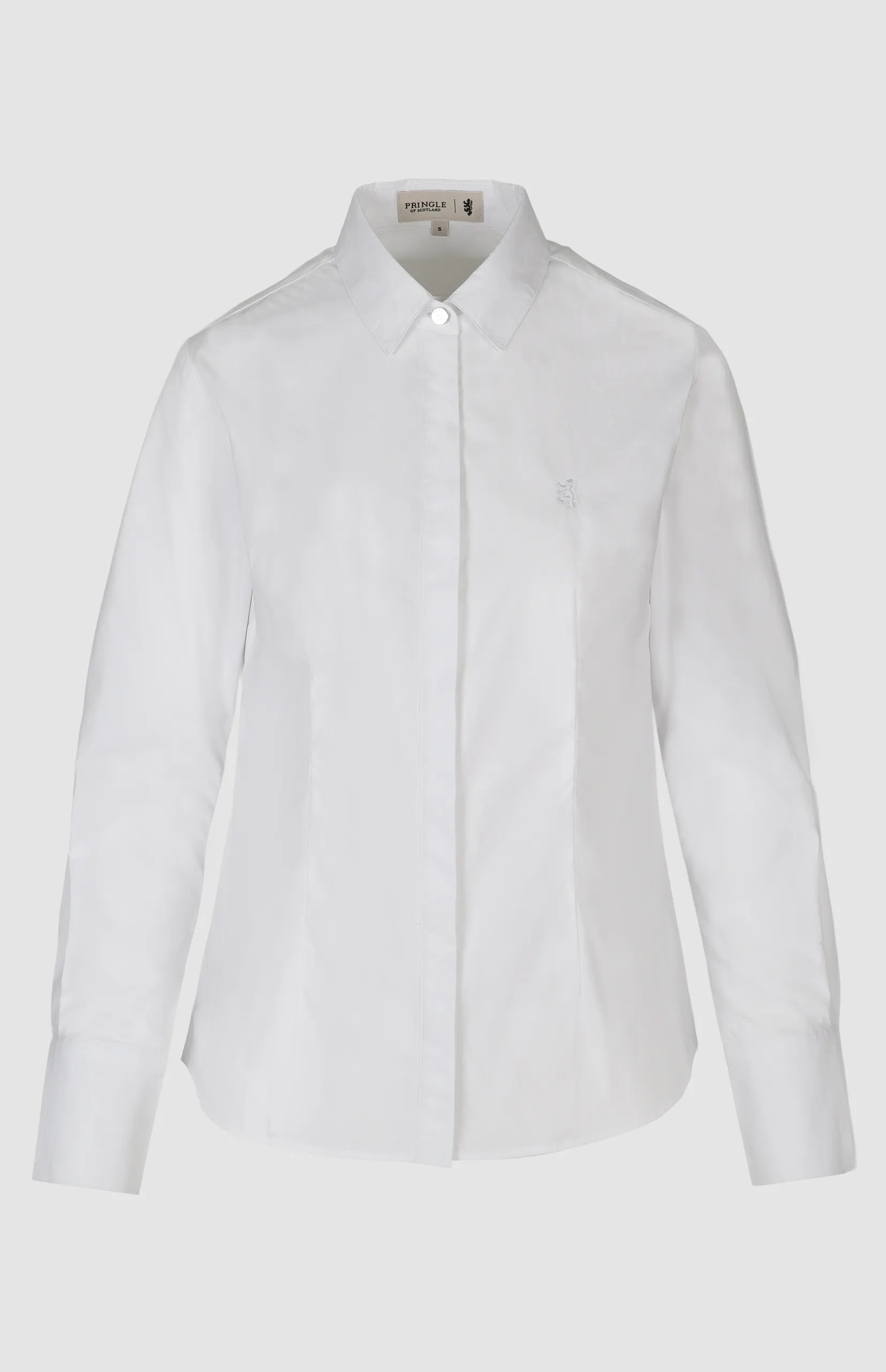 The Pringle Womens Ella Woven White Shirt is a classic shirt which has a crisp and polished look. It is made from 100% cotton, ensuring a breathable and soft feel against the skin. The shirt has a traditional collar and a full button-down front for a timeless aesthetic. It is finished with long sleeves and a regular fit that offers both comfort and style.