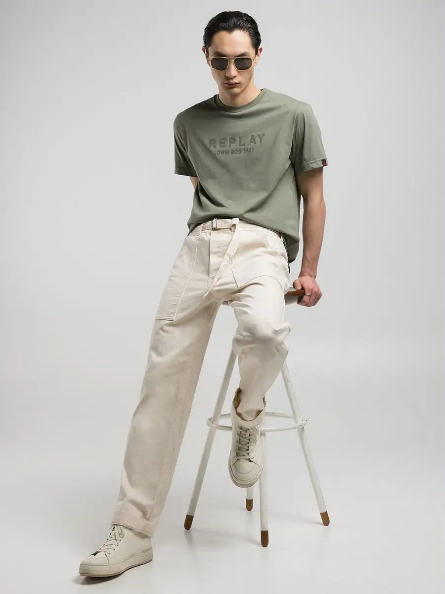Regular-fit crew-neck T-shirt in soft cotton jersey. This short-sleeved design features a rubberised lettering print on the front and is complemented by the archival logo label on the sleeve.
