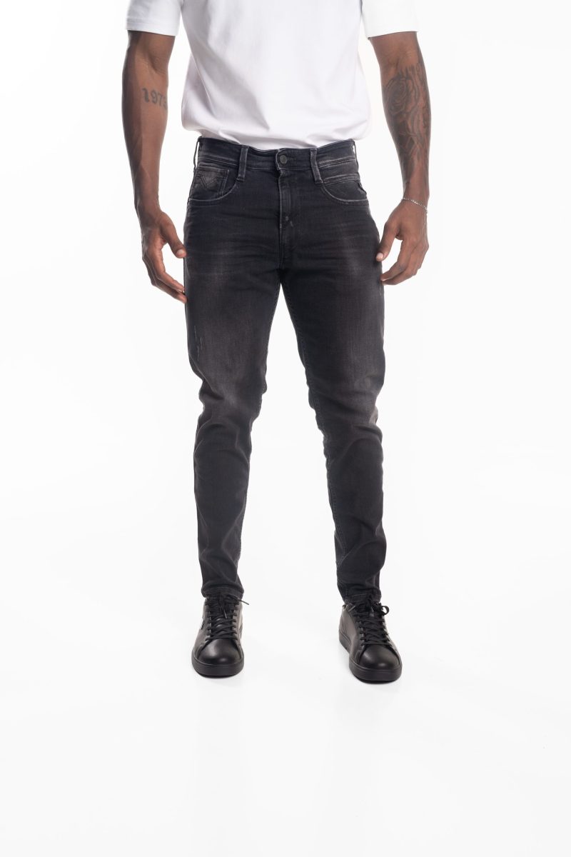 Super Slim-fit jeans with a regular rise and a slim leg that tapers toward the hem. This five-pocket piece comes in 10.5-oz coated power blue/black stretch denim. The coin pocket and back pockets have our iconic gull-wing stitching, while one of the front pockets features a small branded insert. Zip and button fastening. The use of recycled cotton attests to Replay’s commitment to sustainable fashion.