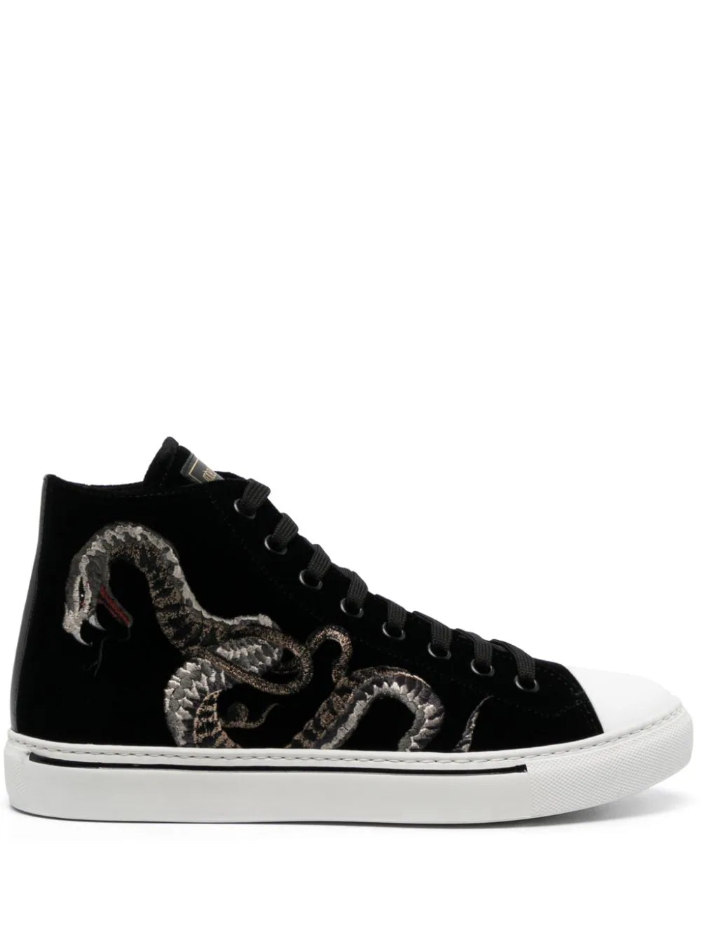 black/white suede embroidered motif logo patch at the tongue panelled design rubber toecap round toe front lace-up...