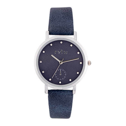 A navy face minimalistacally encased in silver with simple stone markers. This watch announces your status, but subtly so. A perfectly companion to any ensemble.