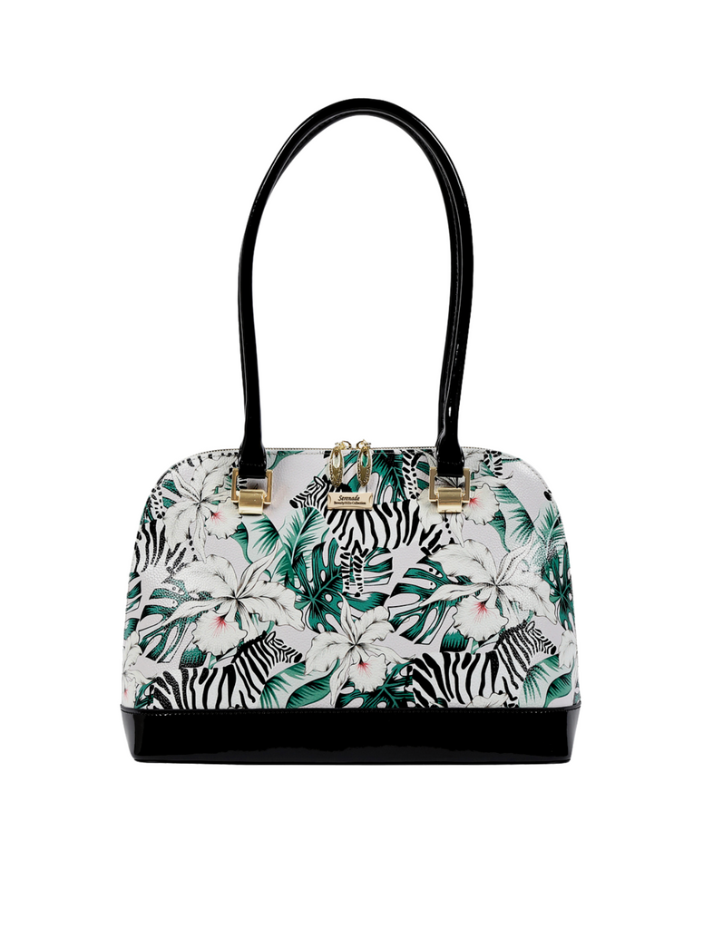 This Stunning Serenade Beverly Hills Collection Zebra Leather bag is perfect for everyday. Crafted from premium leather and featuring two interior zip compartments and two interior slip pockets ideal for organising all your belongings. This bag also has a handy zippered pocket on the back of the bag ideal for storing your keys or phone. A stunning bag that can see you through from daytime to an evening out.