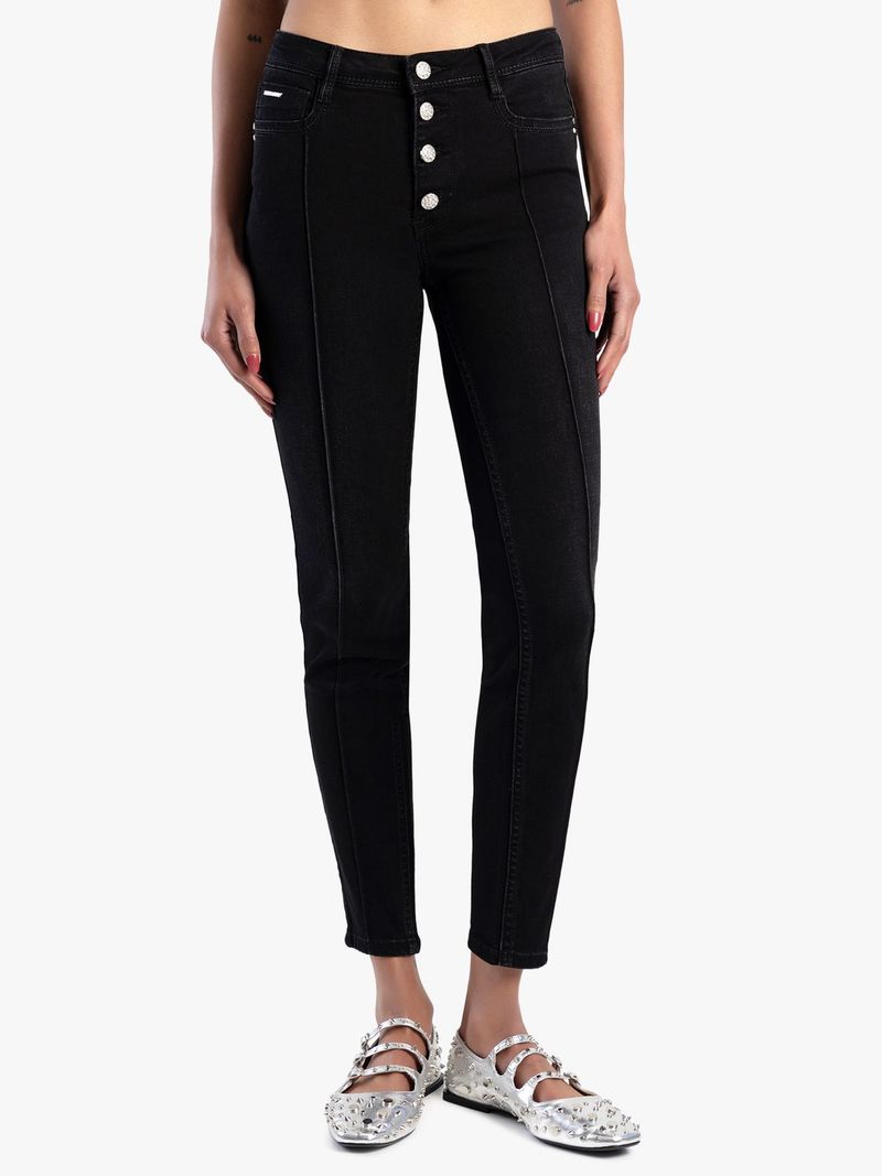 Elevate your style with our trendy black mid-waist skinny jeans. Made with a comfortable cotton blend, these jeans are perfect for a casual day out or a night on the town. Hand wash for easy care. Feel confident and stylish in this versatile wardrobe staple.