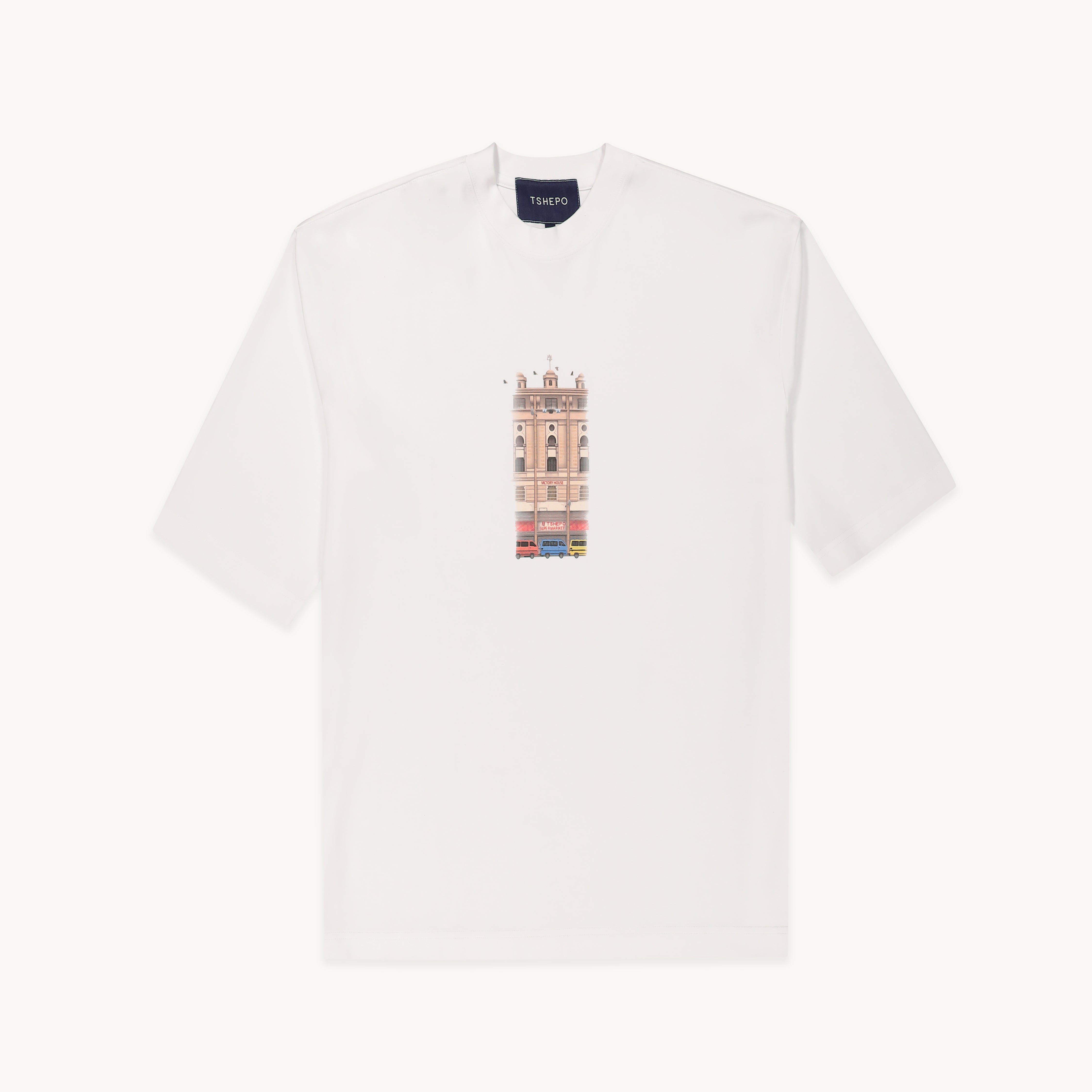 Built in 1897 as Johannesburg’s first lift building, Victory House is the oldest survivor of Marshallstown’s 1886 grid, a landmark with a legacy as enduring as the city itself. This tee honours that heritage in a Jozi scene alive with taxis in TSHEPO’s flag colours and hadedas overhead.