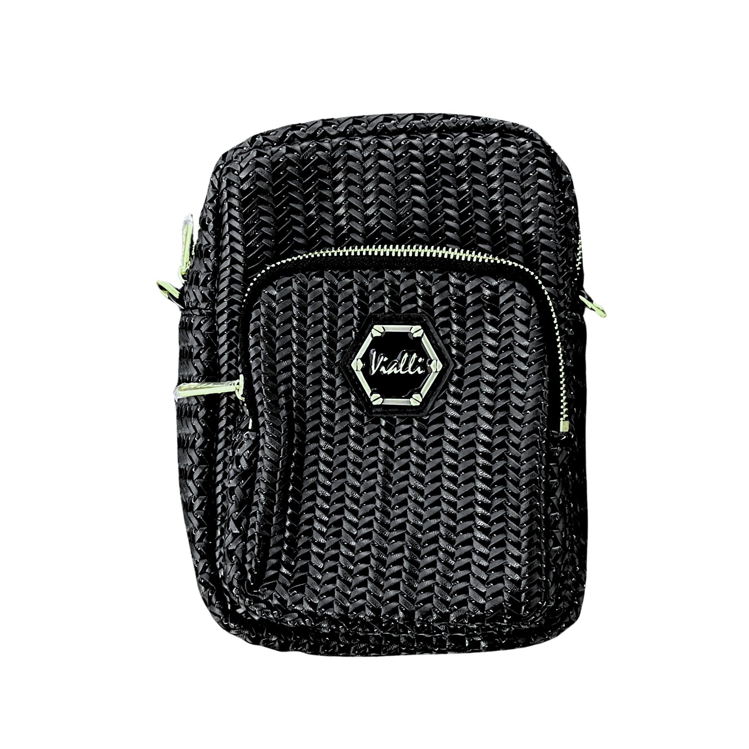 Unify your look with the Vialli Men's Woven Texture Sling Bag, a premium accessory that merges high-fashion detailing with everyday practicality. This sleek black sling features a striking, tactile woven texture and is finished with a distinct hexagonal Vialli logo patch and polished metallic hardware. Its compact design is ideal for keeping your essentials—phone, wallet, and keys—secure and close at hand. To preserve the unique woven texture and hardware, we recommend spot cleaning the bag with a soft cloth slightly dampened with water and a gentle, non-bleaching detergent. Avoid immersing the bag in water, machine washing, and tumble drying. If the bag gets wet, allow it to air dry completely in a shaded area, ensuring the woven fibers maintain their shape and structure.