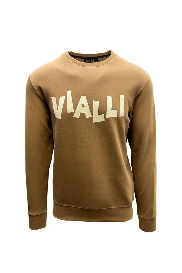 The Vialli Grownner Sweatshirt, part of the winter collection, boasts a blend of high-quality cotton, polyester, and spandex materials. It features the Vialli branding on the front and printed images on the back.