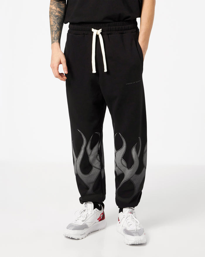 Vision Of Super VS00482 PANTS WITH GREY FLAMES BLACK