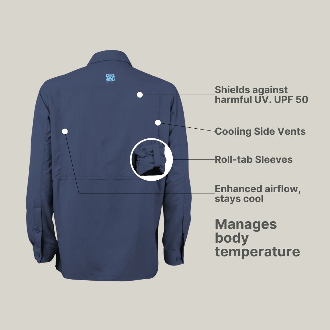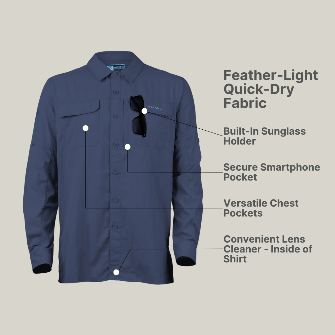 Engineered for practicality, these shirts boast two utility chest pockets, a zip pocket for valuables like passports or IDs, and a built-in eyeglass holder and cleaner, making them an essential for outdoor enthusiasts. The roll-up sleeve design offers versatility, allowing you to adapt your style and comfort to changing conditions. With fade-resistant construction, these shirts maintain their vibrant look even after rugged use.
